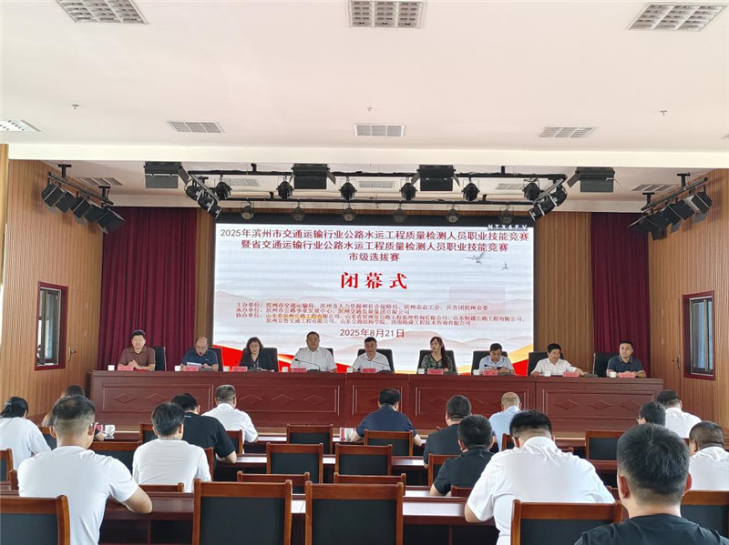 8月21日上午,2025年濱州市交通運輸行業(yè)公路水運工程質(zhì)量檢測人員職業(yè)技能競賽暨省交通運輸行業(yè)公路水運工程質(zhì)量檢測人員職業(yè)技能競賽市級選拔賽閉幕式在公司七樓會(huì )議室舉辦。市人力資源和社會(huì )保障局黨組副書(shū)記、市公共就業(yè)和人才服務(wù)中心主任顏波,共青團濱州市委副書(shū)記丁寶冬,市交通運輸局黨組成員、副局長(cháng)曹斌,市交通運輸局黨組成員、四級調研員鐘軍,公司黨委副書(shū)記、總經(jīng)理、董事劉漢興及市交通運輸局、市總工會(huì )有關(guān)部門(mén)及公司權屬工程公司、監理公司有關(guān)負責同志參加活動(dòng)。