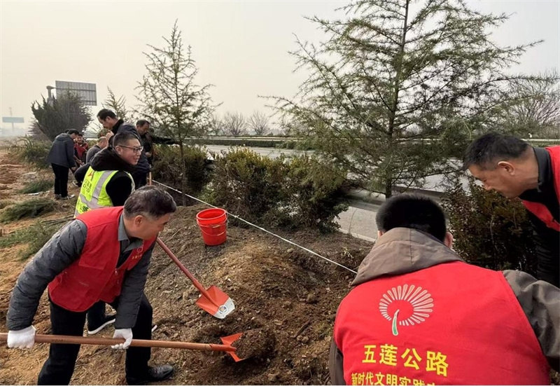 3月12日,正值植樹(shù)節,董梁高速一標段項目部聯(lián)合五蓮縣公路事業(yè)發(fā)展中心,在叩官鎮G342國道旁開(kāi)展“黨旗領(lǐng)航植新綠 合力共建筑新景”植樹(shù)活動(dòng)。